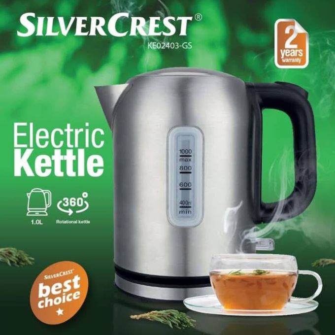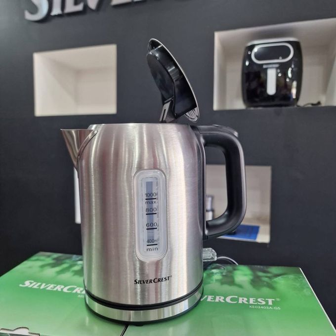 ☕ Bouilloire Électrique SilverCrest KE02403-GS – 1L, Inox, 360°, Compacte et Rapide ⚡